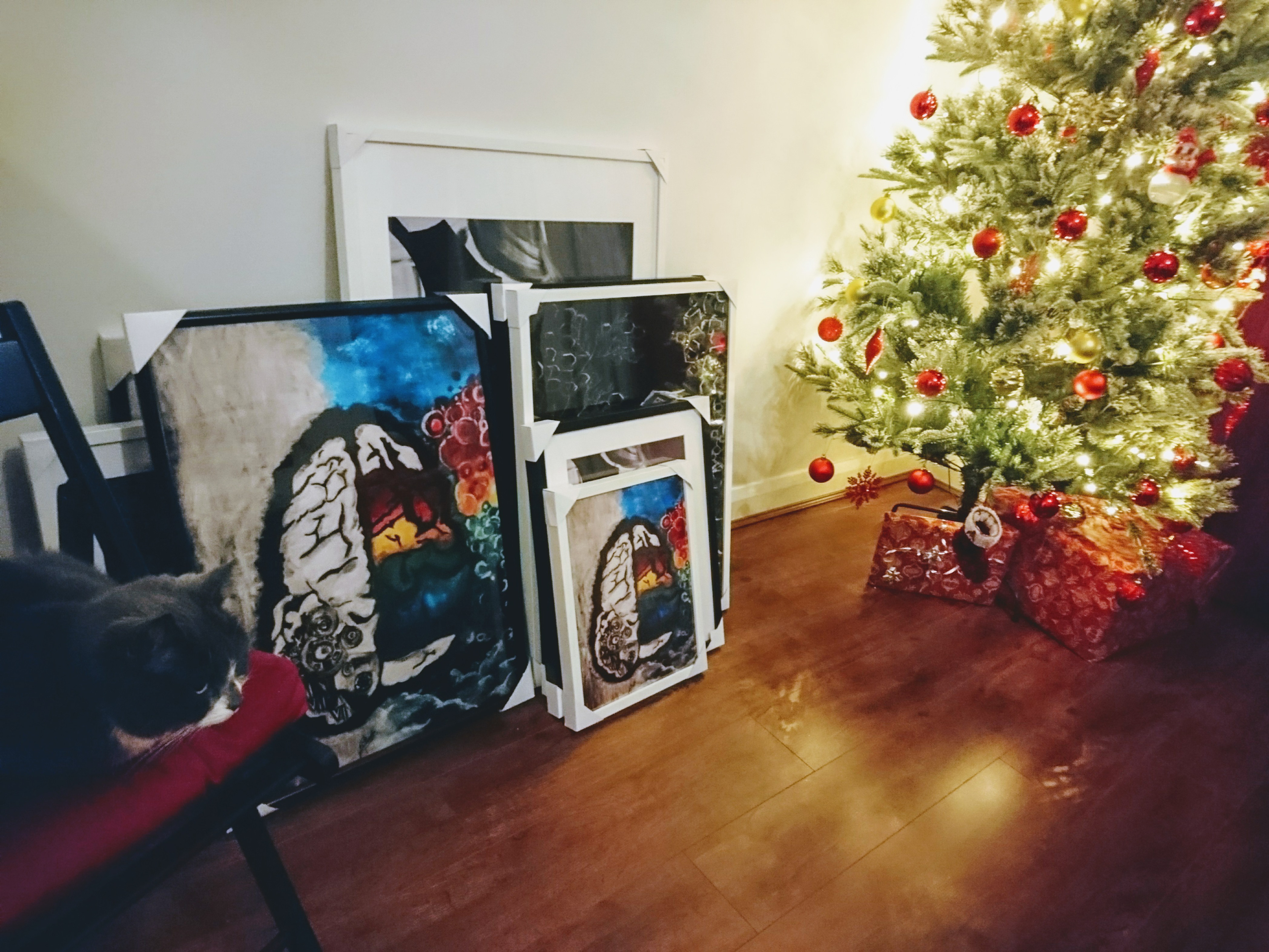 I did the background, and after a few days, I looked at the painting, thought about space and astronauts, and thought it might fit an Astro in the room. I had to create one.