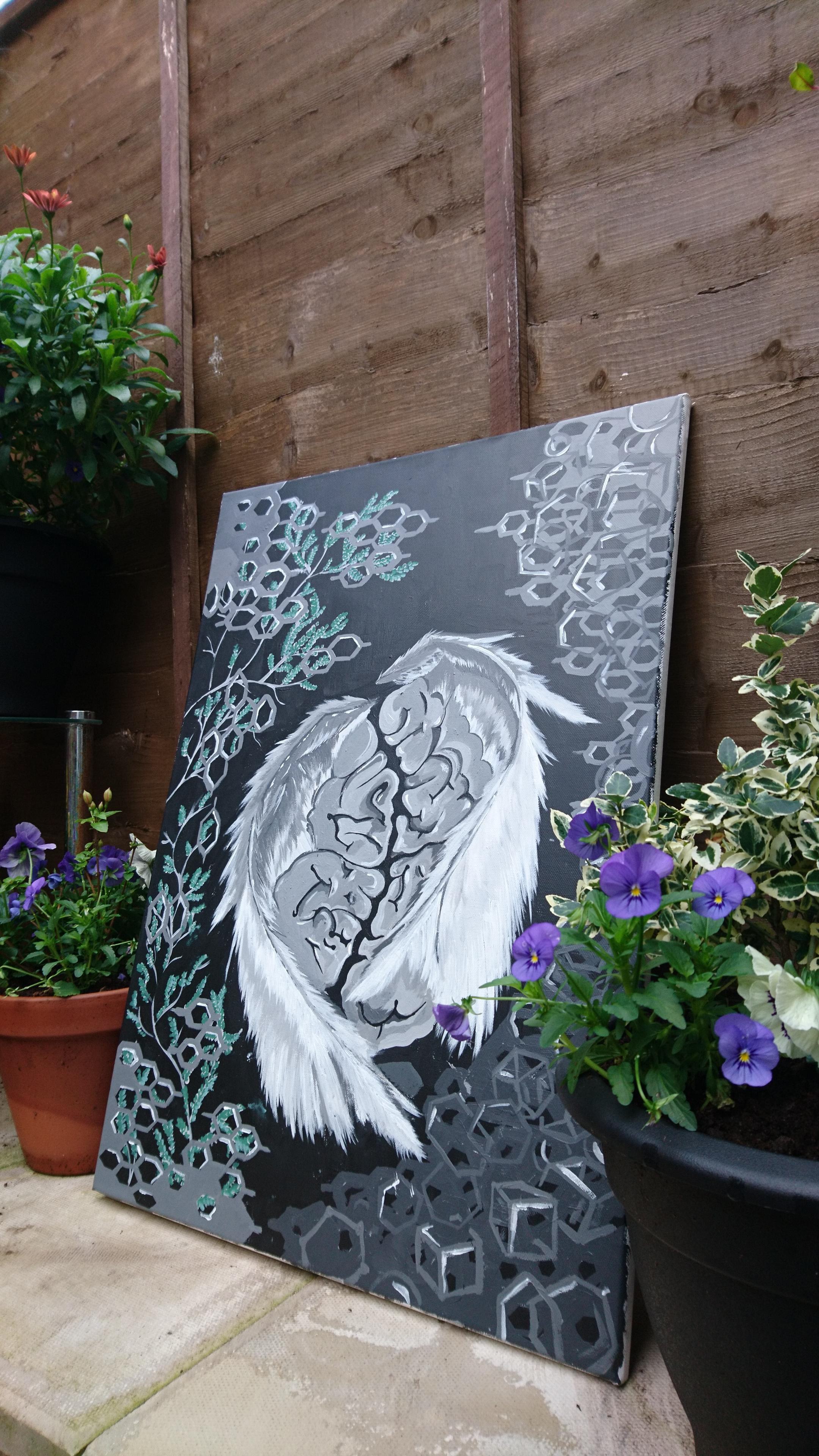 Astro Senses is a painting very close to my heart, painted a few years back when I was living on my own and working on a dream. In the beginning, I wouldn't know what I was up to create, so I started on canvas with big circle splashes on the background, thinking it would inspire me towards some ideas.
